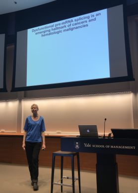 Yale Cancer Center and the Yale RNA Center co-hosted the “Third Workshop on Splicing Factor Mutations and RNA Biology in Cancer” at the Yale School of Management on May 22 and 23. The event was organized by Drs. Stephanie Halene, Karla Neugebauer, and Manoj Pillai with assistance from Richard Carr. Sponsors included the Edward P. Evans Foundation, Yale Cancer Center, Yale Center for RNA Science and Medicine, and the Leukemia & Lymphoma Society. Basic and physician scientists from Australia, Europe, and the U.S. presented their cutting-edge research and exchanged ideas on this emerging field that interfaces basic biochemistry and cancer biology.